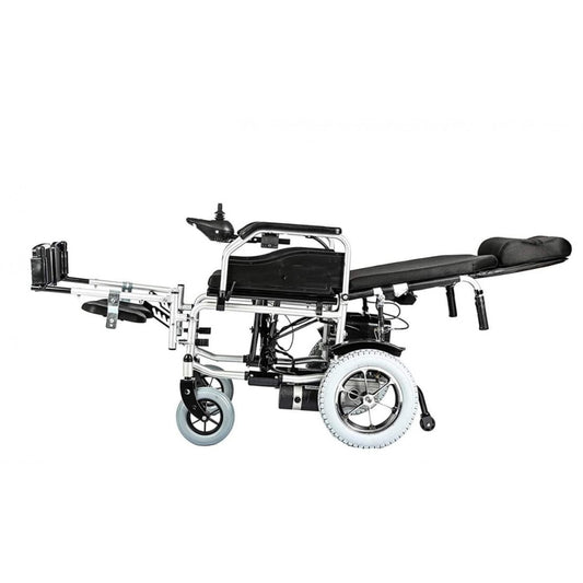 We provide electric wheelchairs for different use cases and functionalities, like the reclining electric wheelchair, which has a reclining backrest, and the fully reclining electric wheelchair, which has a reclining backrest and elevating footrest, which aids the user to recline on the wheelchair fully.